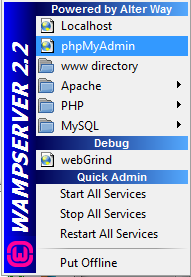 - Jika benar maka pada Systray akan muncul icon WAMP yang jika diklik akan tampil seperti ini