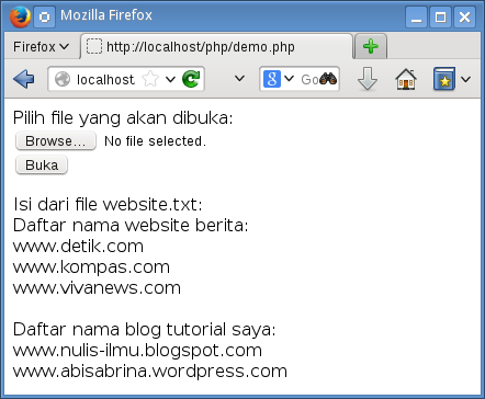 6. Dan berikut screenshot saat script dipakai untuk membuka file text